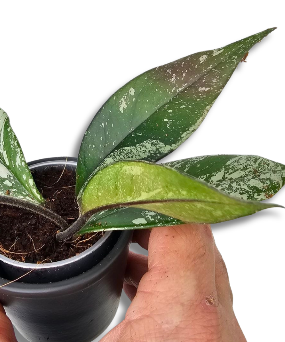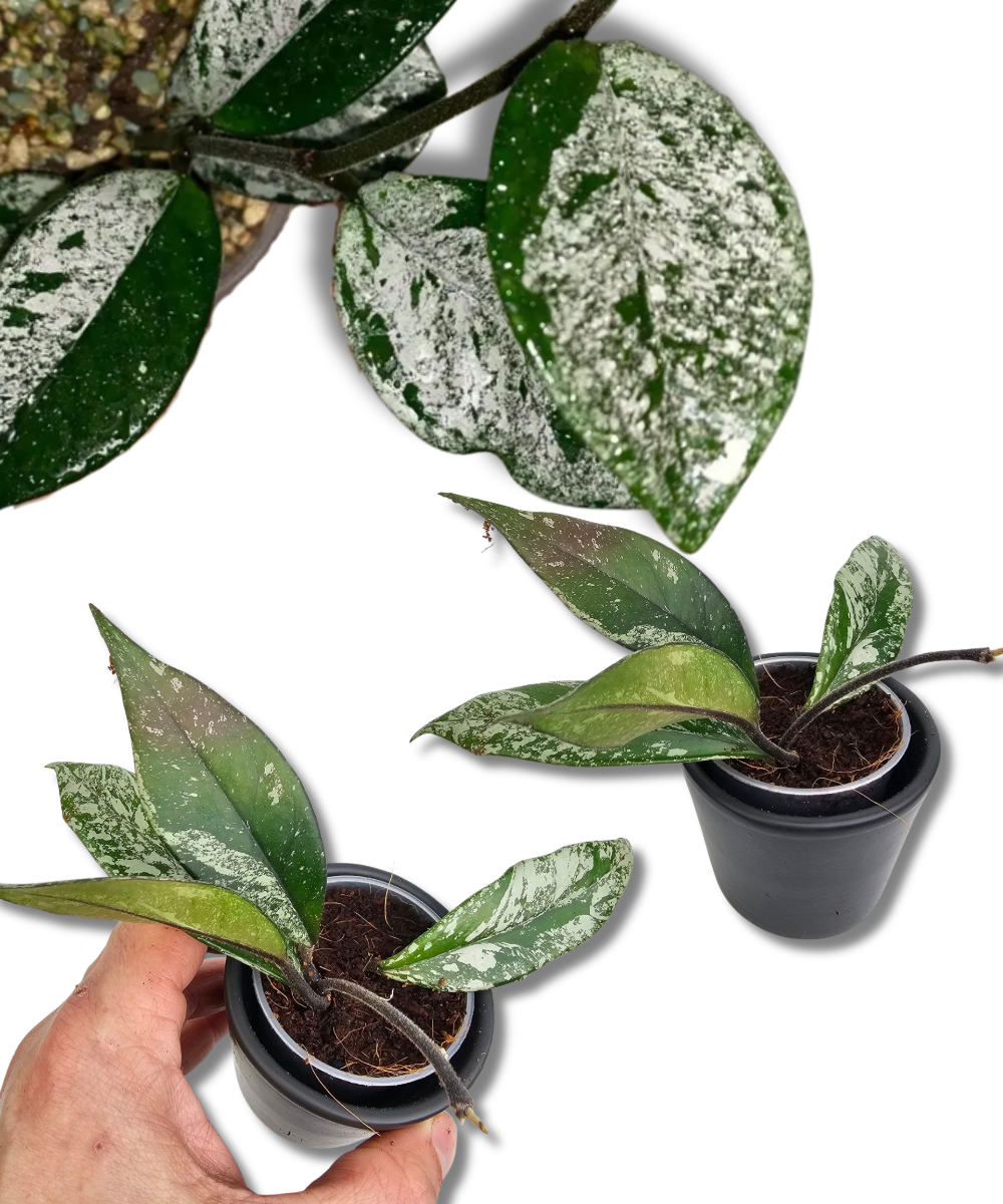 Hoya carnosa ‘Stardust’ to dekoracyjna odmiana hoii wyróżniająca się charakterystycznym, jasnym nakrapianiem na ciemnozielonych, mięsistych liściach. Delikatne kropki przypominające gwiezdny pył nadają roślinie subtelnego, ale bardzo atrakcyjnego wyglądu, szczególnie w dobrym świetle. Każdy liść ma nieco inny układ plamek, co podkreśla unikalny charakter tej odmiany.